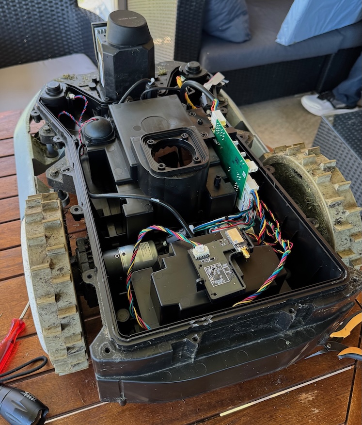 My dad and I decided to simply replace the antenna on the mower. We did have a replacement already on hand, as my dad had bought replacements for important parts early on. We had read some forum posts online that the antenna could be replaced and my dad said he had 'seen a video on YouTube' about it, wehre 'it looked easy but he was like 30 seconds and done'. With that in mind we started the disassembly.