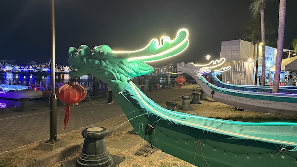 The Tainan 400 Zone features multiple displays and different groups performing live. Whilst I visited, multiple bands played on the stage close to the Port of Anping. The pictures of the Dragon Boat and the Flower Infinity were made there (sadly I can't remember the real name of the displays). At the end of the Zone I went to the night market. There I realised that it was already 10:00 and they were turning off the lights. So I had to walk home from there. The walk across the Anping peninsula takes about 1h (if you're eating fried dumplings and aren't in a hurry. It's mostly flat so it's easy to walk.