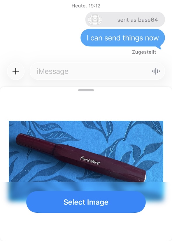 In other news, when inserting a message into the conversation, you do get the send button! So I just need to insert() the message and then the system send button appears. And once the user presses that, 'didStartSending() actually gets called, where I can dismiss() and terminate the app. (I only do that once the user sends the image, so the user can select a different image otherwise.) Earlier, I was thinking that didStartSending() is where you send()the message, but this is not the case.
